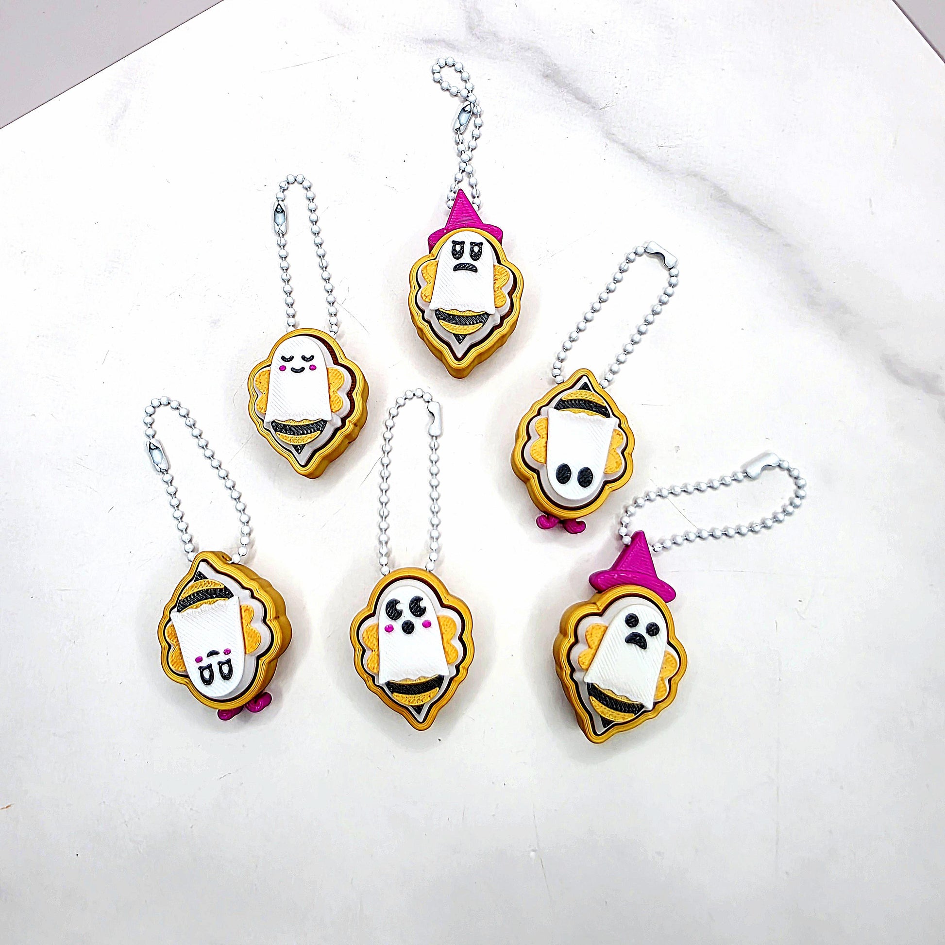 3D Printed Boo-Bee Ghost Fidget Clicker Keychains | Halloween Bee Ghost Charms in 6 Spooky Styles & 3 Body Designs