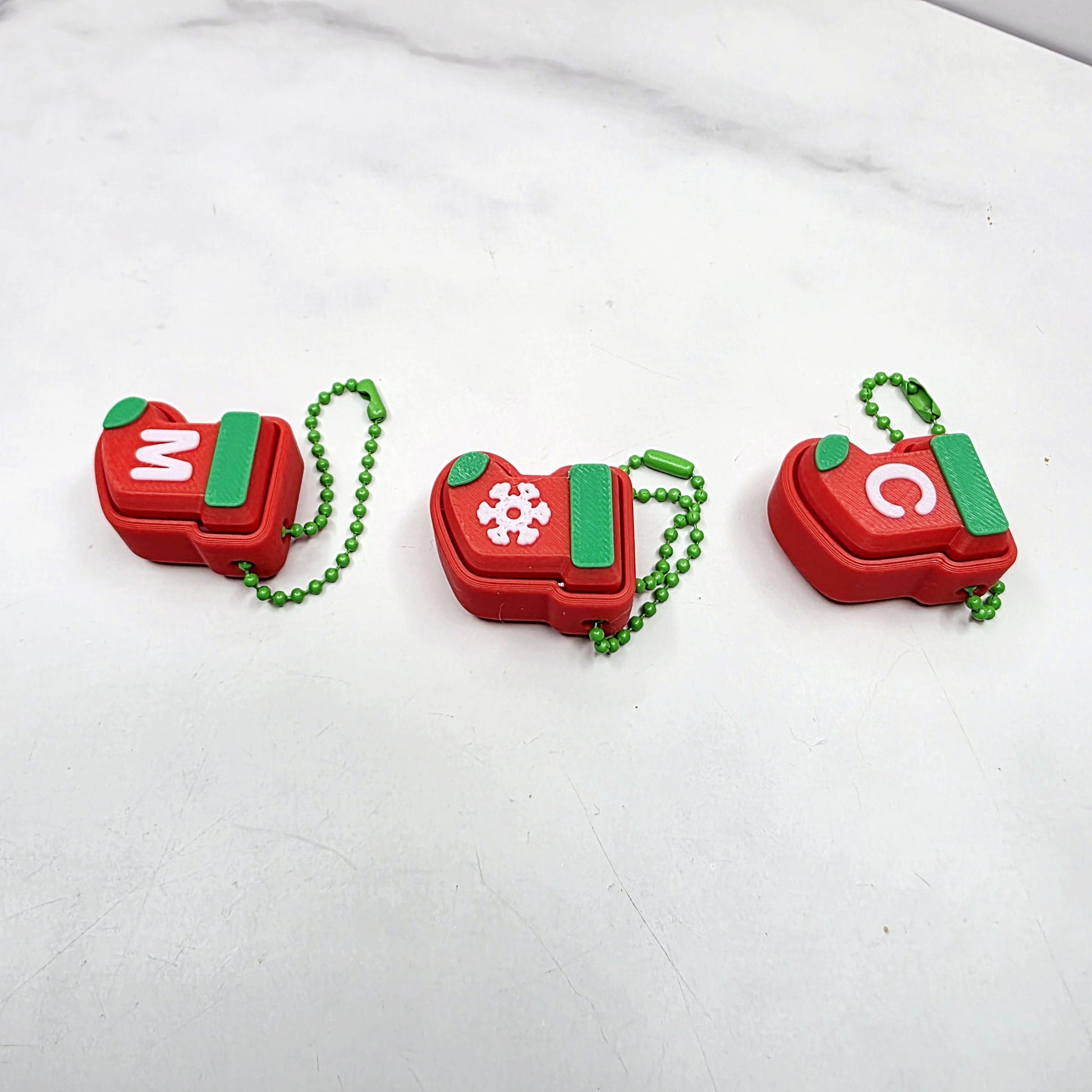 Stuff a little holiday fun into your everyday carry with this 3D Printed Christmas Stocking Fidget Clicker Keychain! Each stocking charm features a tactile keyboard switch clicker that delivers crisp, satisfying clicks—perfect for stress relief, sensory play, or keeping your hands busy during the festive season. Personalize your keychain by selecting a custom initial or symbol, making it a thoughtful and unique gift for friends, family, coworkers, or Secret Santa exchanges. Clip it to your keys, backpack, purse, or tumbler to carry holiday cheer everywhere you go. These keychains are great as stocking stuffers, party favors, or festive collectibles for kids, teens, and adults alike. Durable, lightweight, and customizable, this Christmas Stocking Fidget Clicker is a merry way to combine holiday spirit with functional fun!