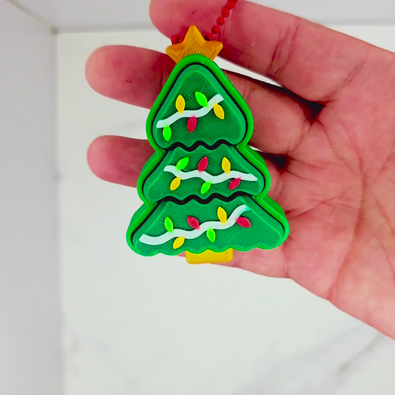 3D Printed Christmas Tree Fidget Clicker Keychains | Holiday Stress Relief with Star, Lights & Lil Deborah Tree Design