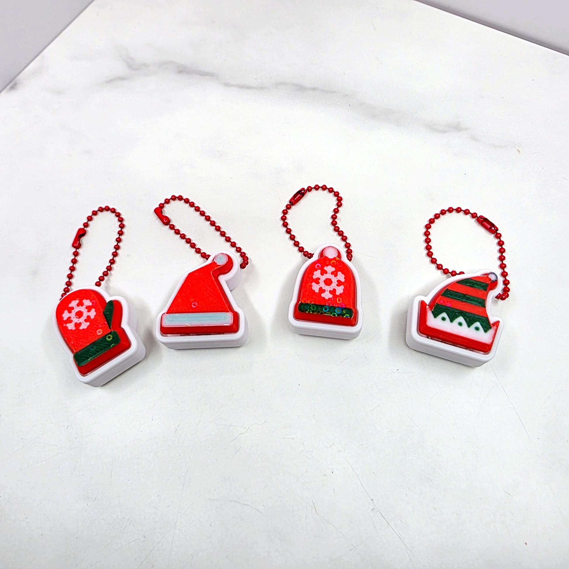 3D Printed Cozy Christmas Fidget Clicker Keychains | Elf Hat, Santa Hat, Beanie & Mitten Holiday Stress Relief Charms
