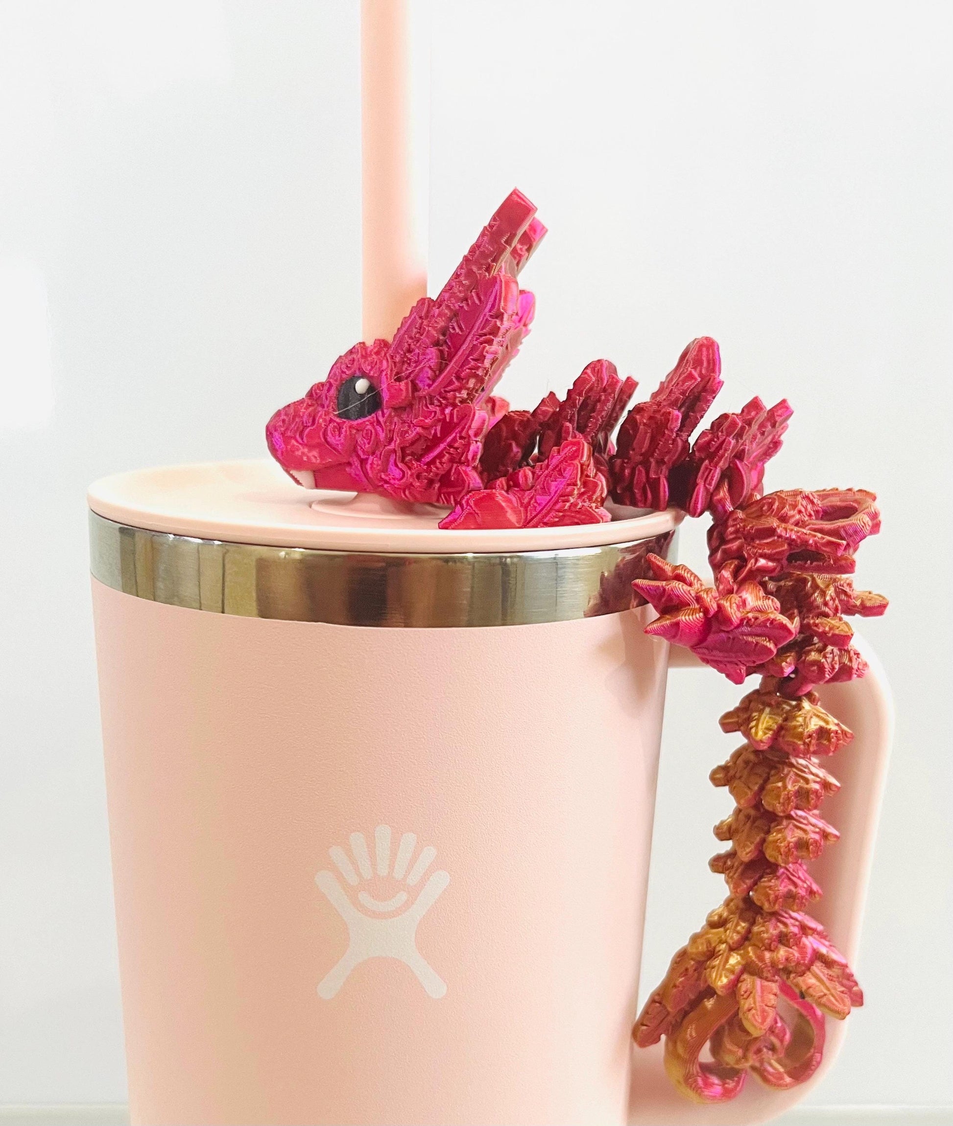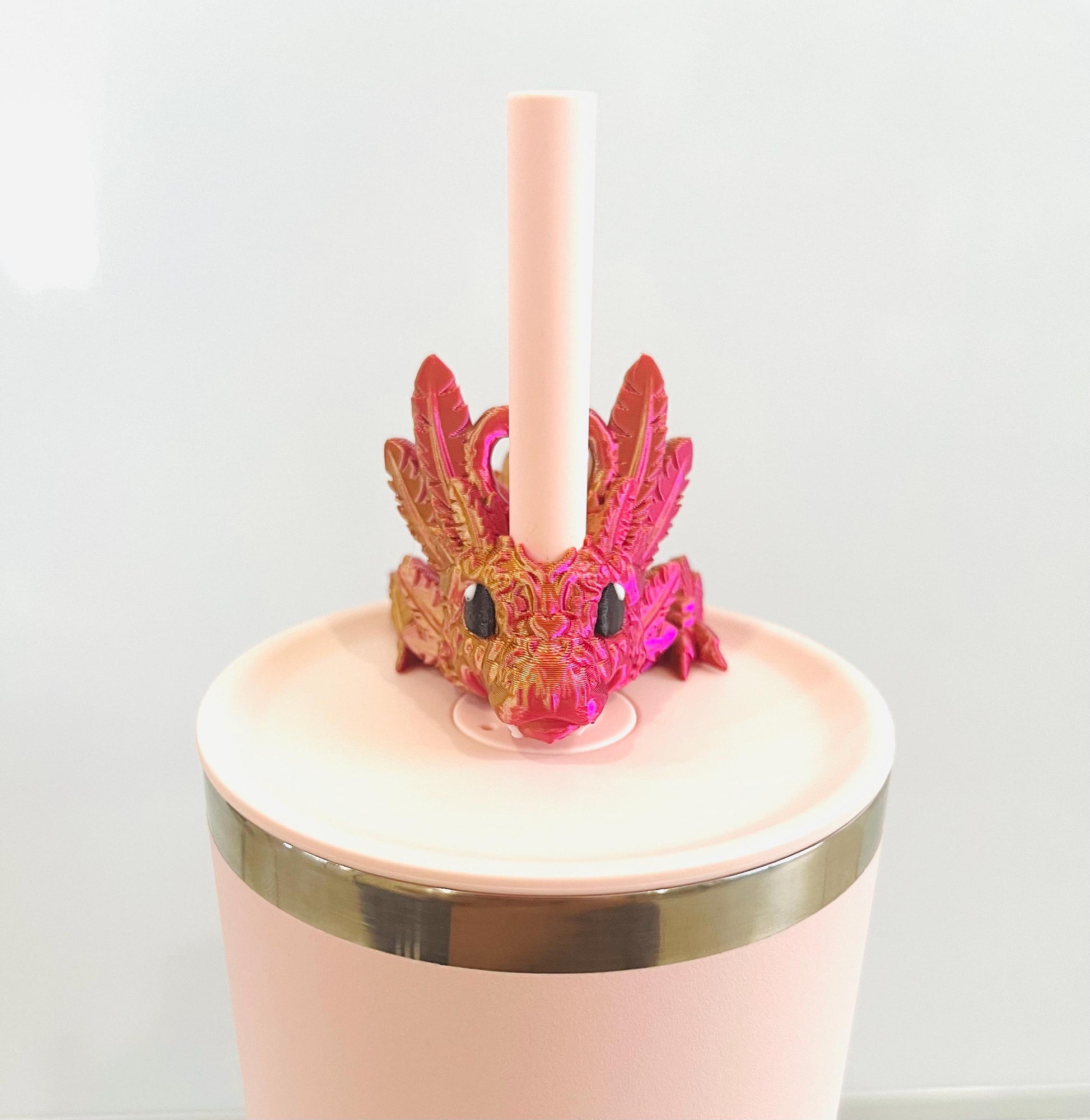 3D Printed Light Heart Dragon Straw Topper ā Flexible Dragon Accessory for Hydroflask Tumblers | Fantasy-Inspired Tumbler Topper Charms