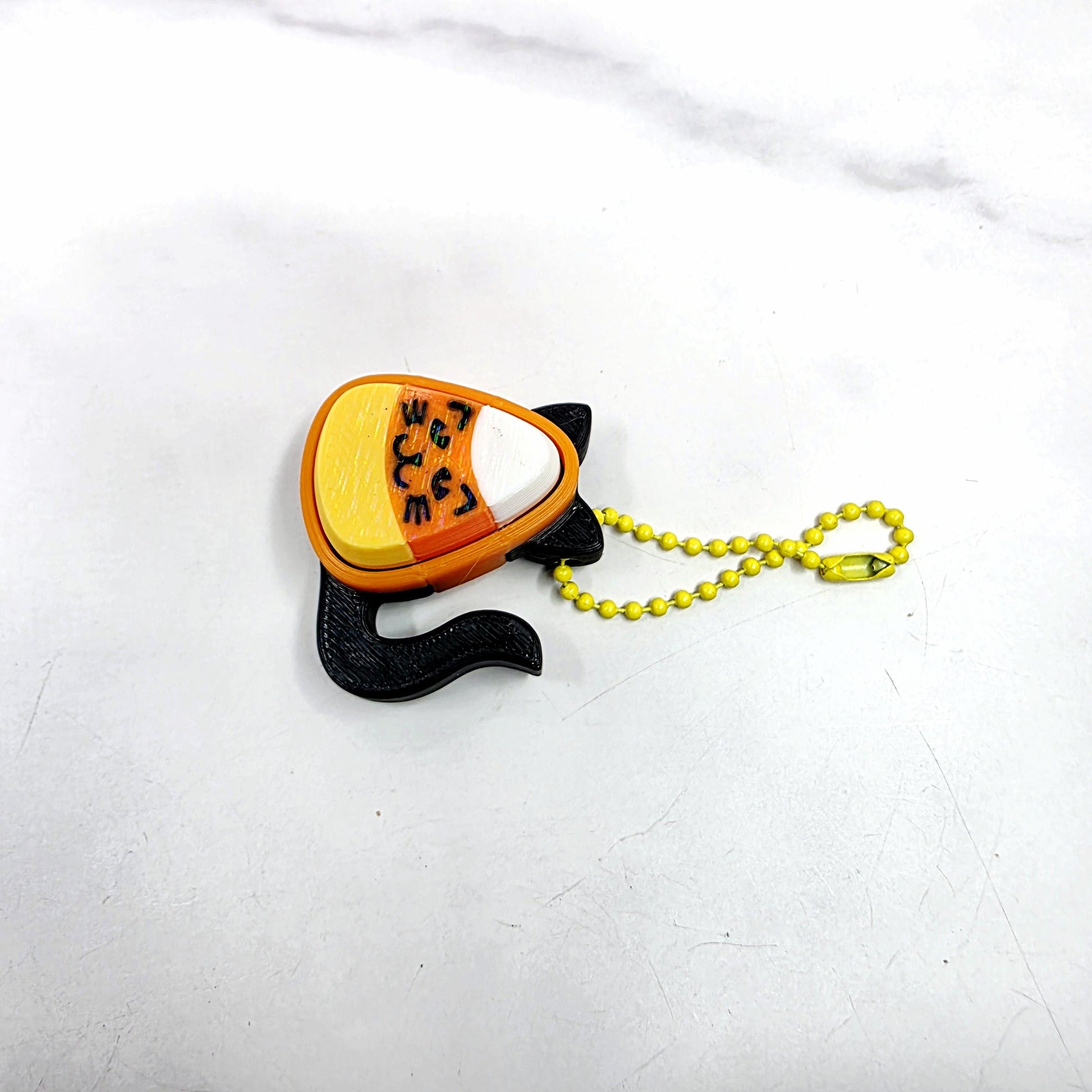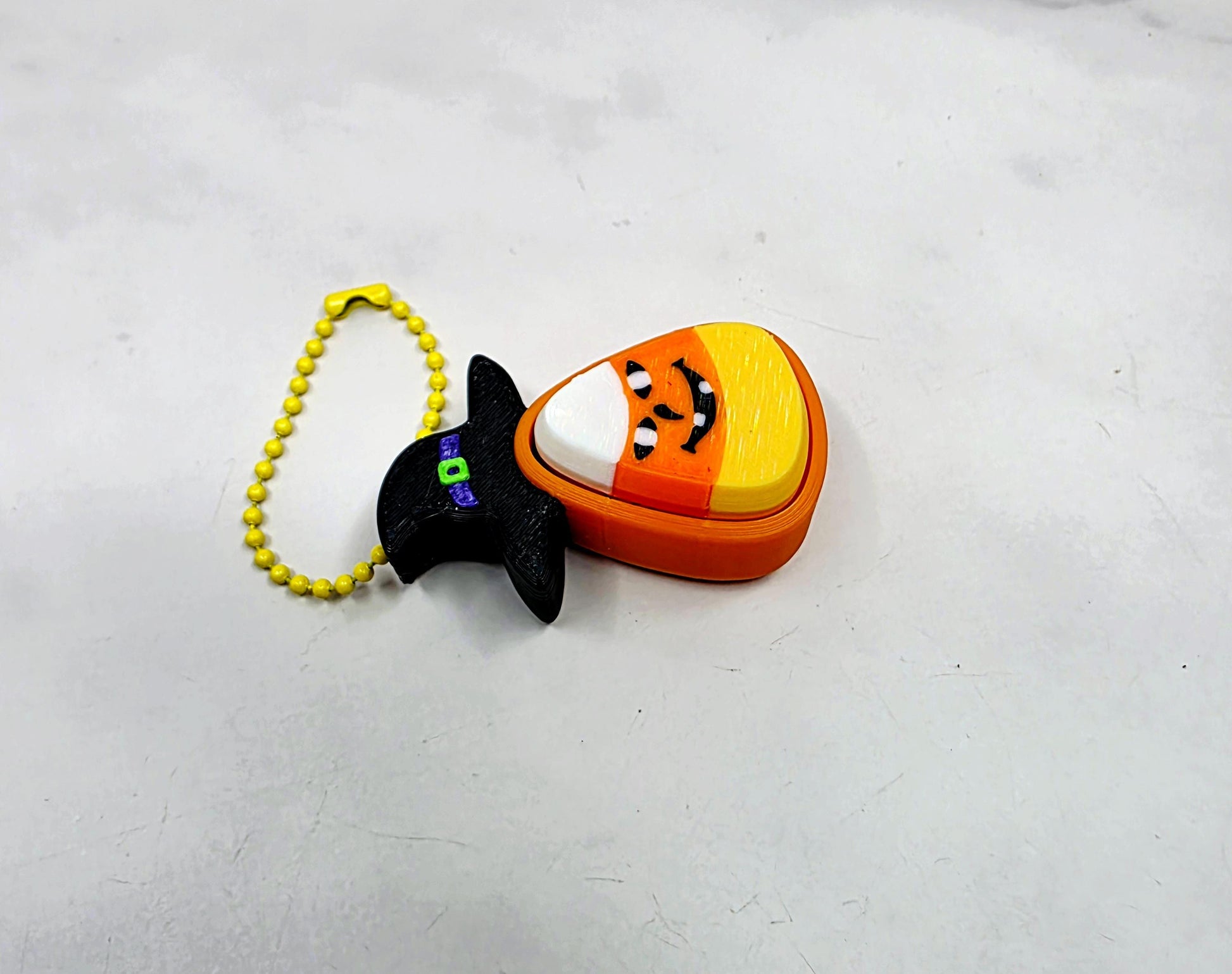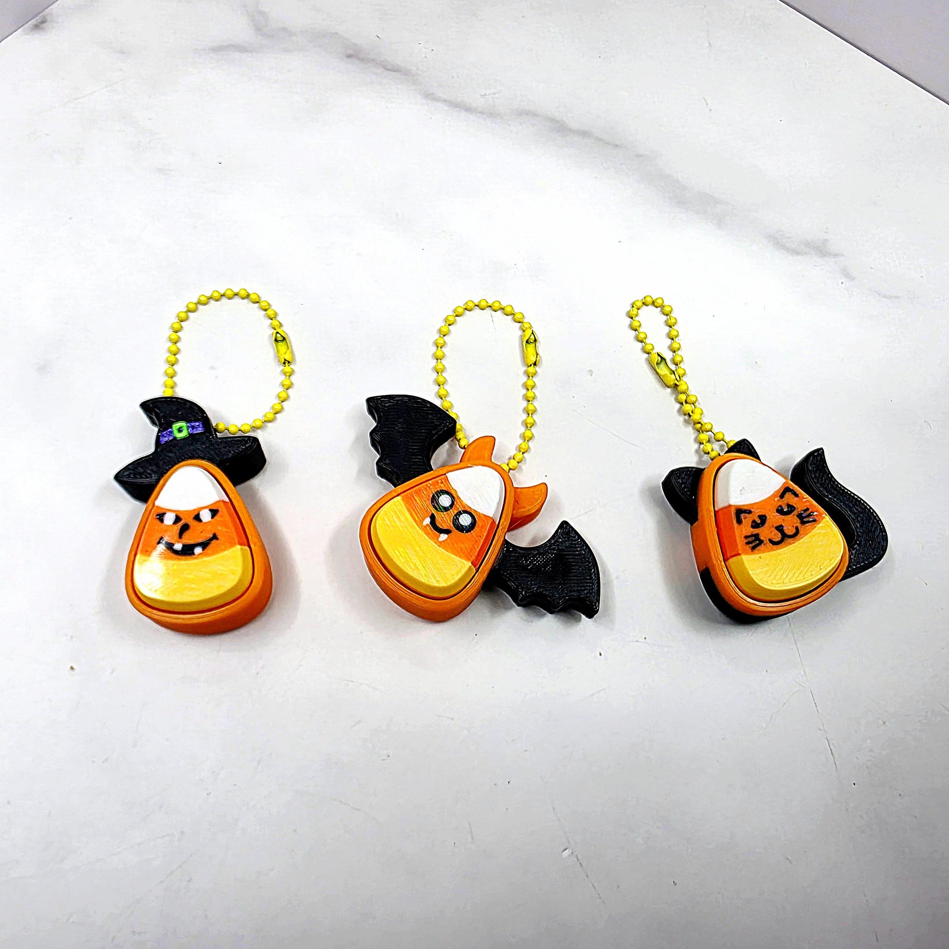 3D Printed Spooky Candy Corn Fidget Clicker Keychains | Vampire Bat, Witch & Kitty Halloween Holographic Key Charms