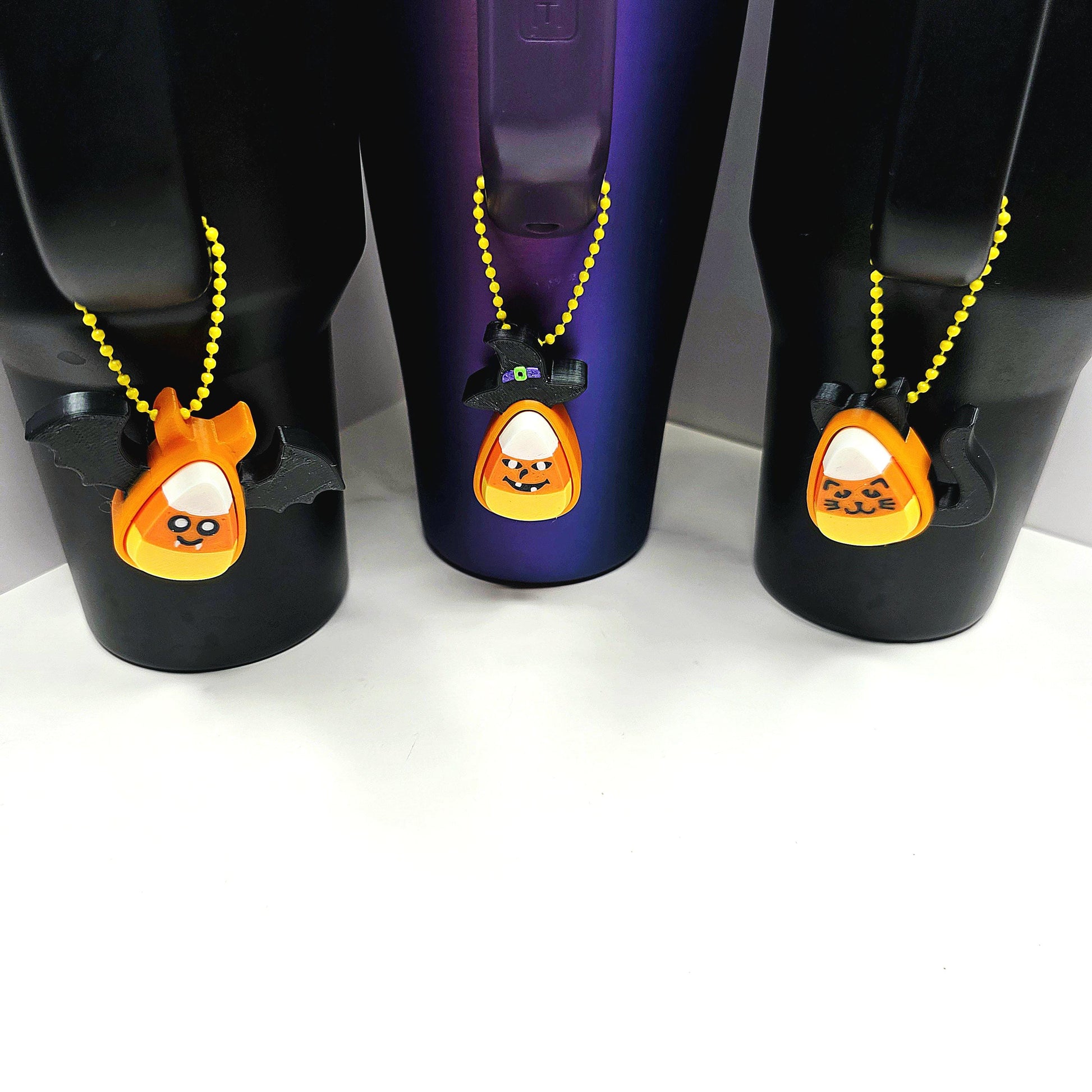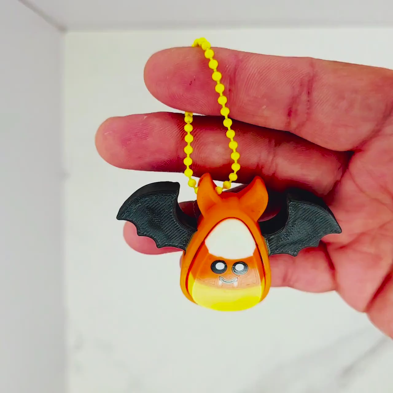 Celebrate spooky season with these 3D Printed Spooky Candy Corn Fidget Clicker Keychains! Each charm features a fun twist on classic candy corn with a holographic orange, white, and yellow face (holographic pattern may vary). Choose from three unique designs: Vampire Bat Candy Corn with bat wings, Witch Candy Corn with a pointy hat, or Kitty Candy Corn with ears and a curled tail. Built with a tactile keyboard switch clicker, these charms provide crisp, satisfying clicks for stress relief, sensory play, or simply keeping your hands busy. Clip them to your keys, tumbler, backpack, or purse for a festive Halloween accessory that's both creepy and cute. Perfect for trick-or-treat season, party favors, or as a collectible fidget toy for kids, teens, and adults who love Halloween fun. Add a little holographic sparkle and spooky charm to your everyday carry!