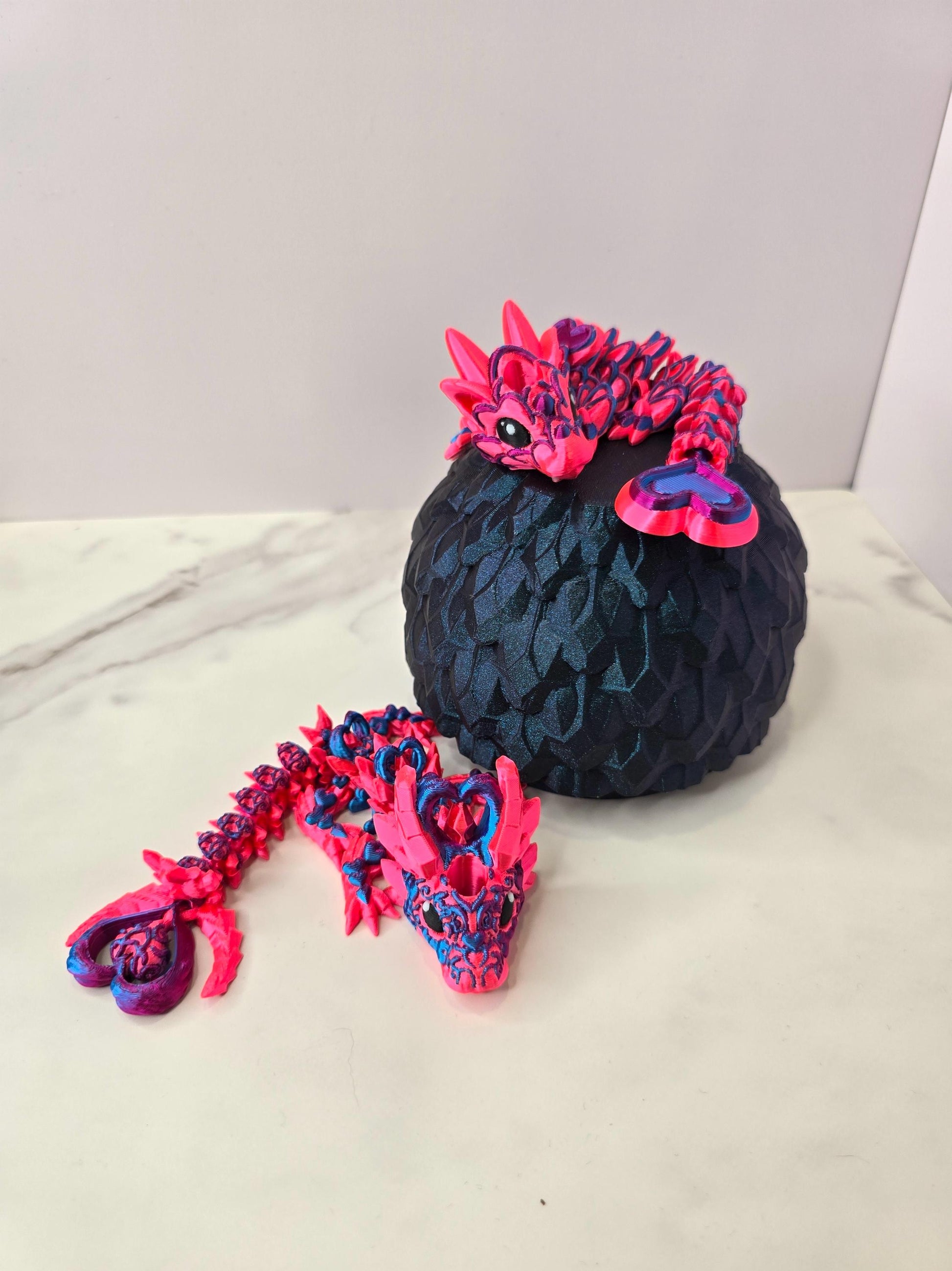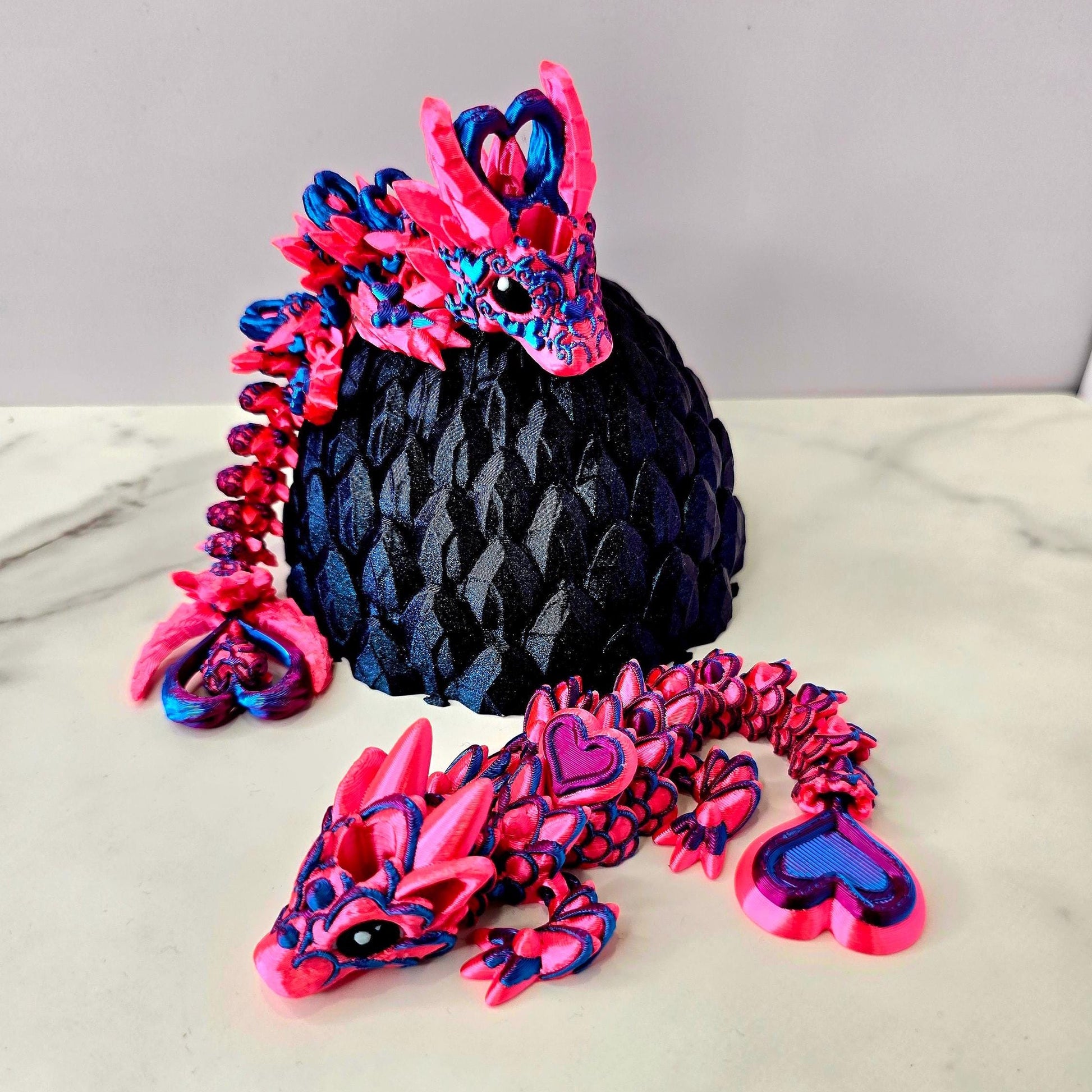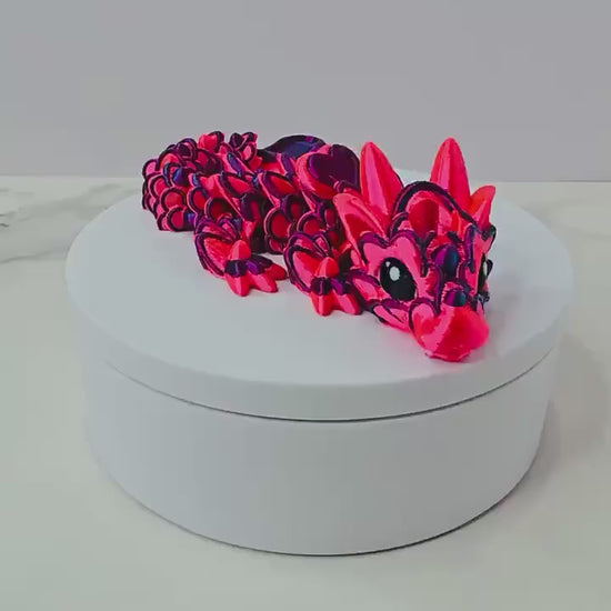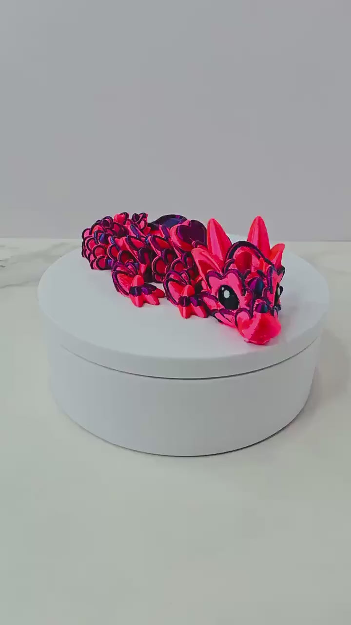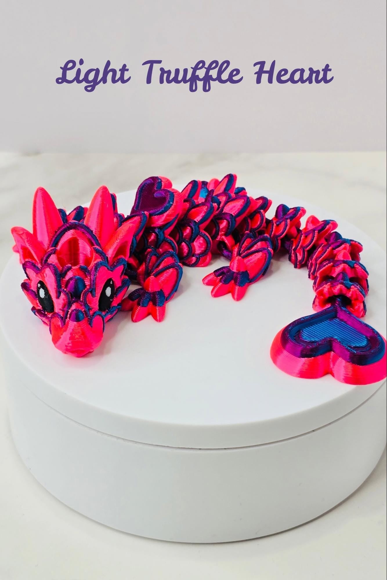 Introducing the **3D-Printed Berry Truffle Heart Dragons**—the perfect companion to your new Berry Truffle Stanley Tumbler! These whimsical dragons feature fully flexible bodies, allowing them to pose and move as you like. Available in two enchanting designs: