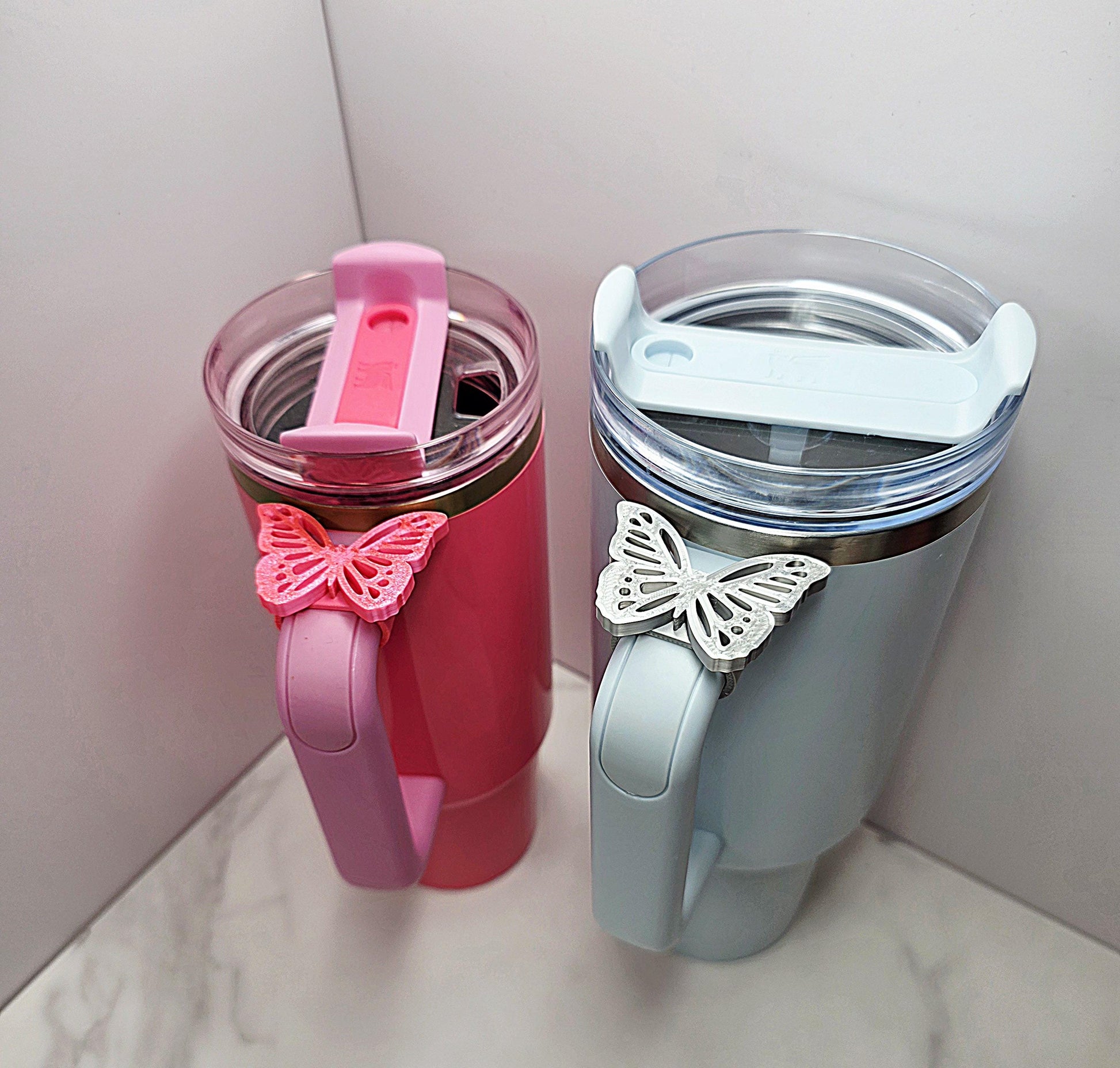 Give your tumbler an upgrade with a butterfly handle clip topper that adds a burst of color and sparkle!