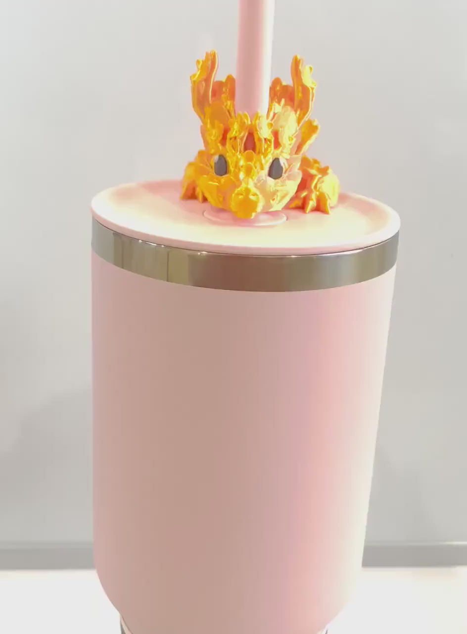 Cherry Blossom Dragon Straw Topper for Hydroflask | Floral Fantasy Cup Charm | Spring Tumbler Accessory Gift Idea | Tumbler Cup Charms