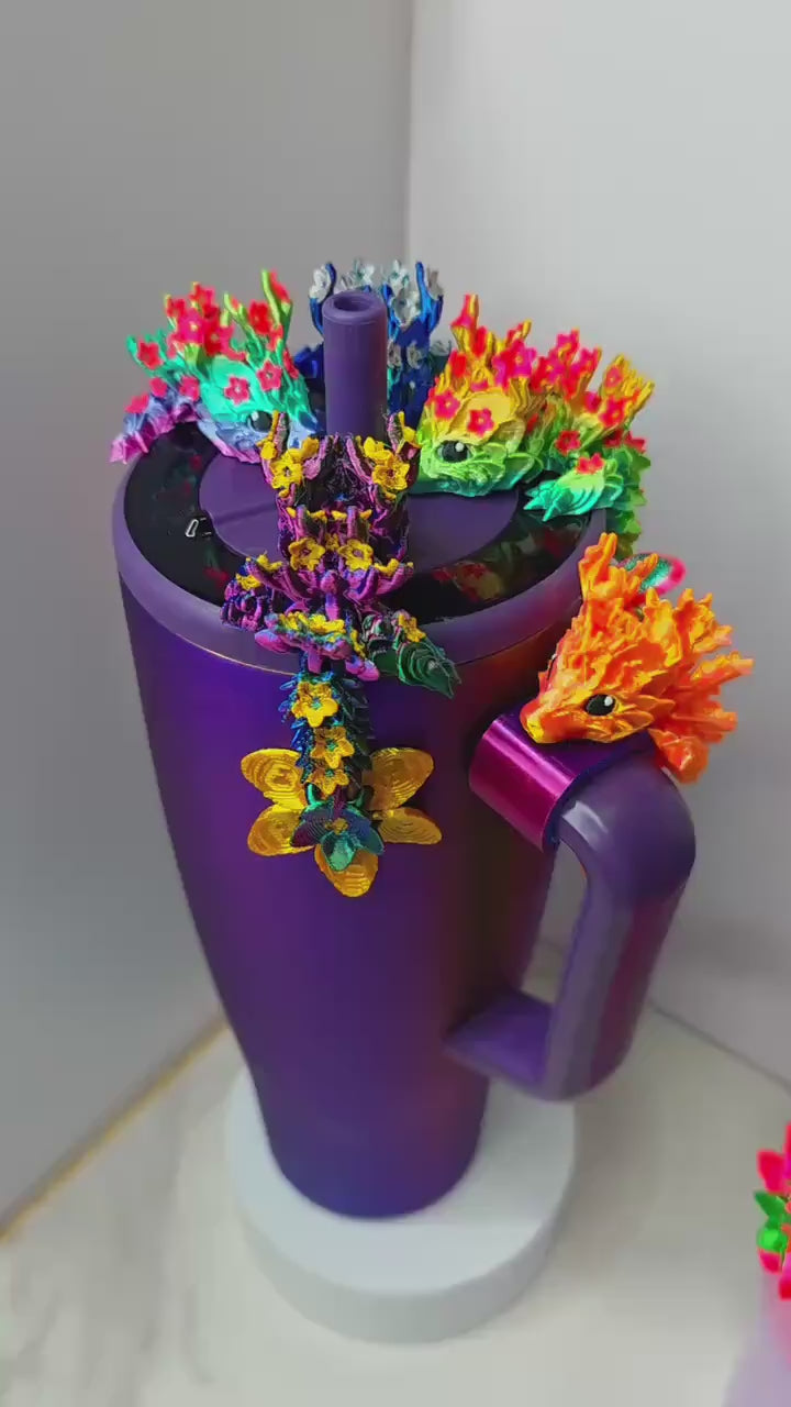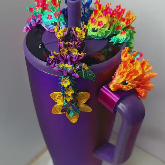 Add a touch of magic to your drinkware with our 3D Printed Cherry Blossom Dragon Toppers, specially designed for Brumate, Stanley, and Hydrojug tumblers. These charming dragon toppers feature a fully flexible body that allows you to pose them however you like, with magnets under the head and tail for easy attachment.