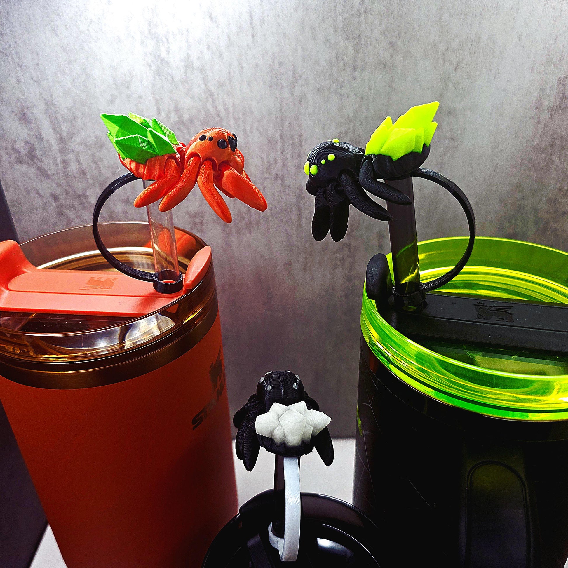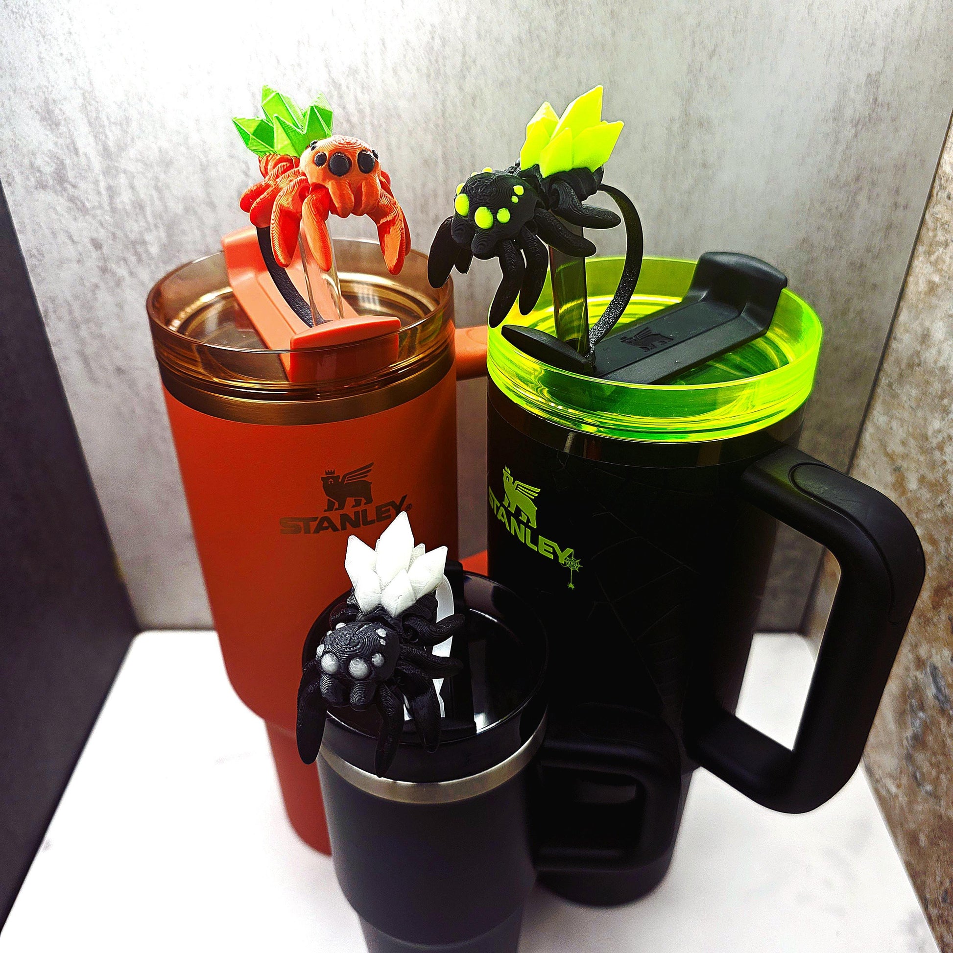 Cute Crystal Spider Stanley Straw Cover Flexible Body Crystal Gemstone Custom Colors and Glow-in-the-Dark Option | Tumbler Accessory Charms