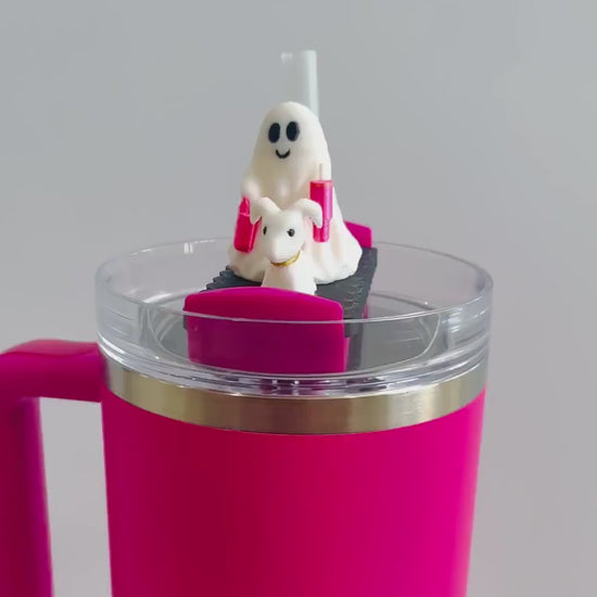 Cute Ghost Walking Dog Lid Topper for Stanley Tumblers – Halloween Tumbler Accessory with Bogg Bag & Mini Stanley Options - Tumbler Charm