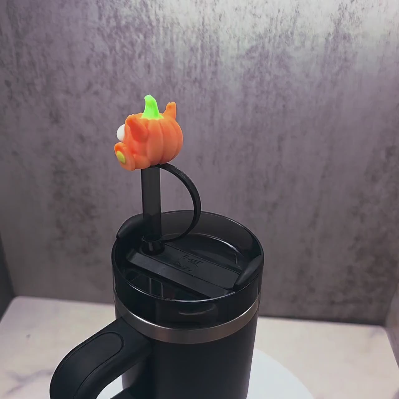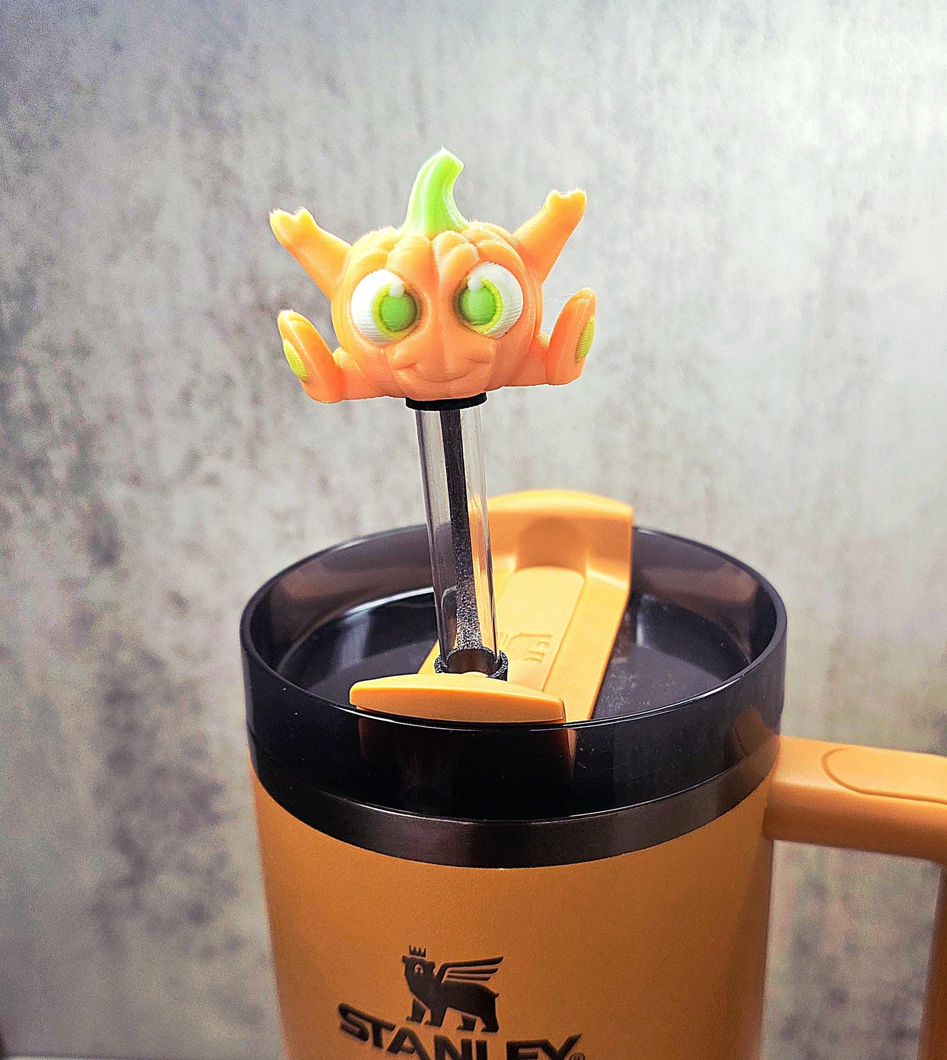 Cute Happy Baby Pumpkin Stanley Straw Cover – Glow-in-the-Dark Option | Halloween Tumbler Accessory Charm for 20oz 30oz 40oz Stanley
