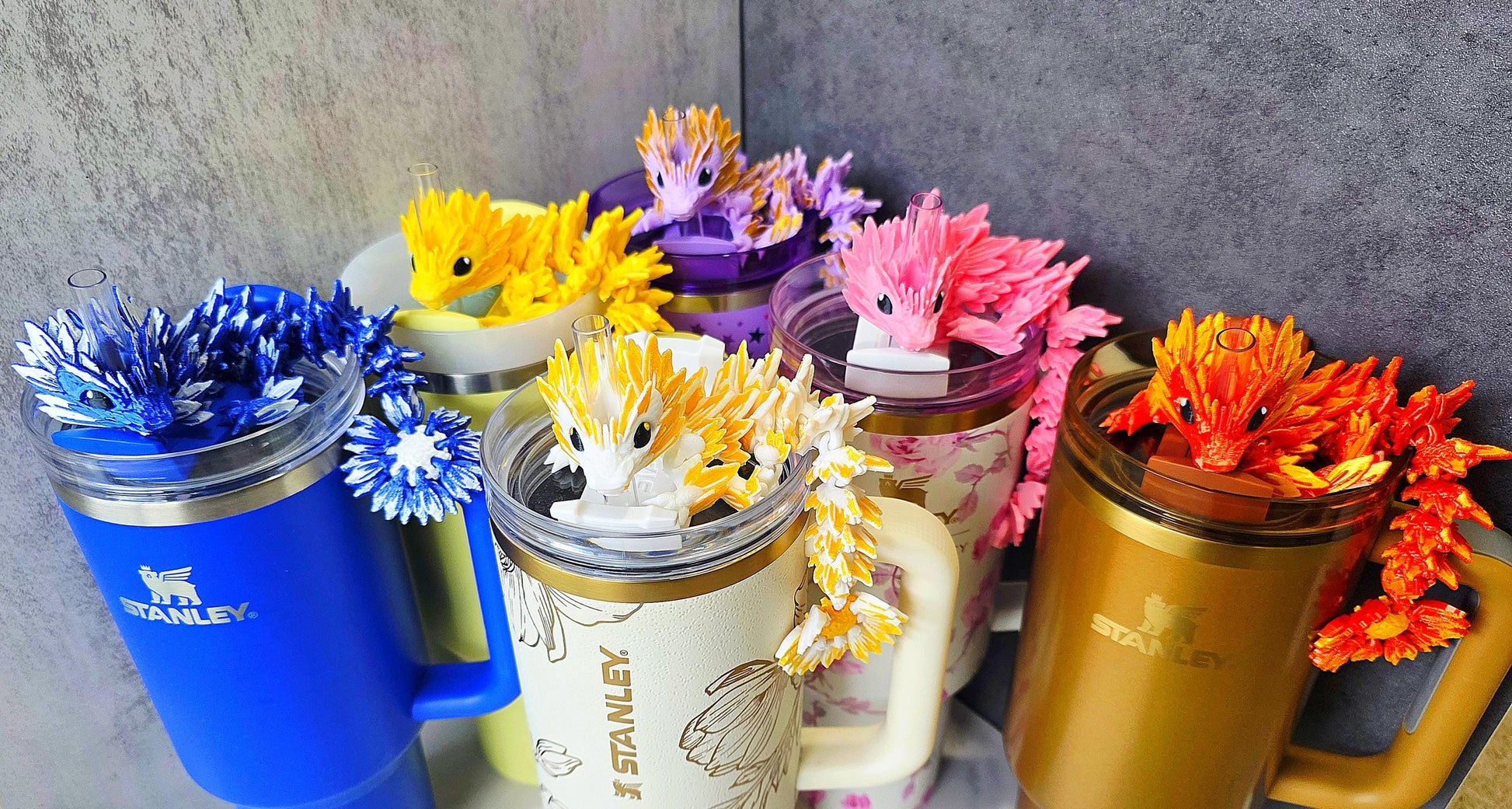 🌸🐉 *Bloom into summer with our enchanting* **Summer Flower Dragon Straw Toppers** *for Stanley Tumblers!* Each dragon is inspired by a beloved seasonal bloom and features a **fully flexible body**, delicate **petal-like scales**, and a beautifully detailed **floral tail** that brings your tumbler to life.
