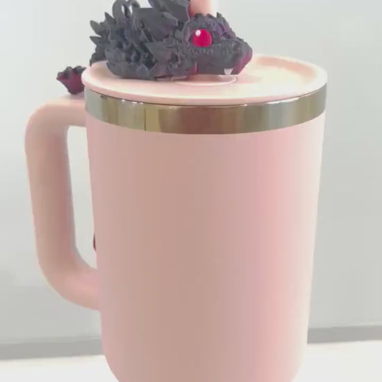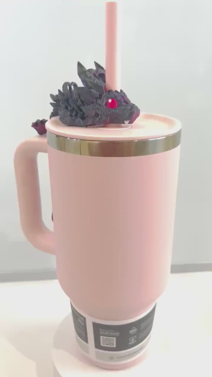 Dark Heart Dragon Tumbler Straw Topper | Hydroflask Accessory | Fantasy Dragon Cup Topper for Tumblers |