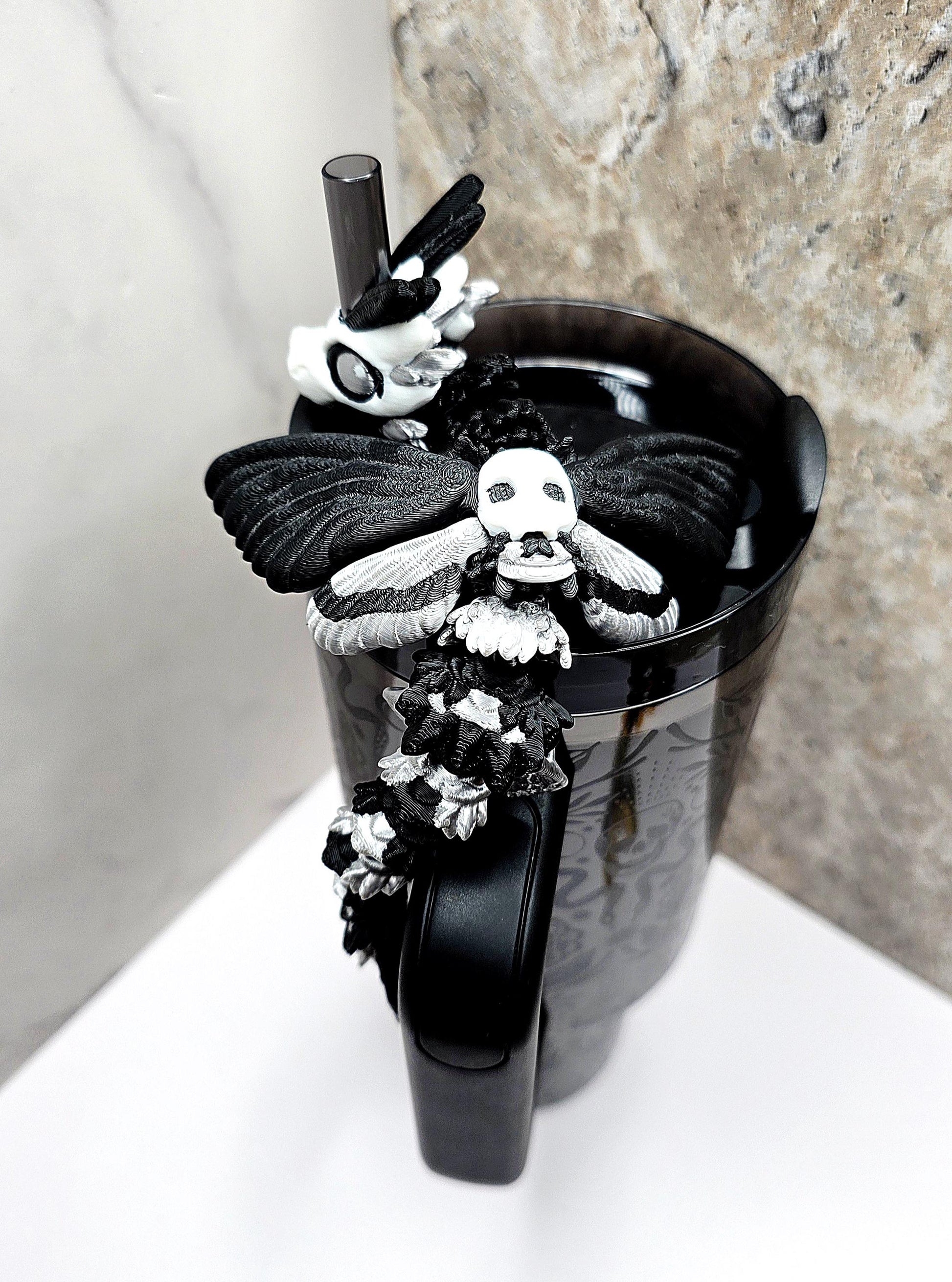 Death Moth Dragon Straw Topper for Stanley Tumblers | Gothic Skull & Moth Wing Cup Accessory | Spooky Halloween Tumbler Topper Charm