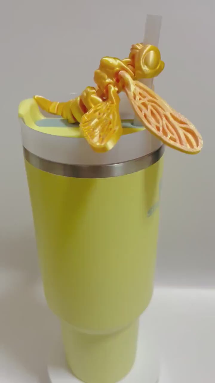 Dragonfly Straw Topper for Stanley Tumbler | 3D Printed Flexible Wings & Tail | Nature-Inspired Tumbler Accessory | Tumbler Charm