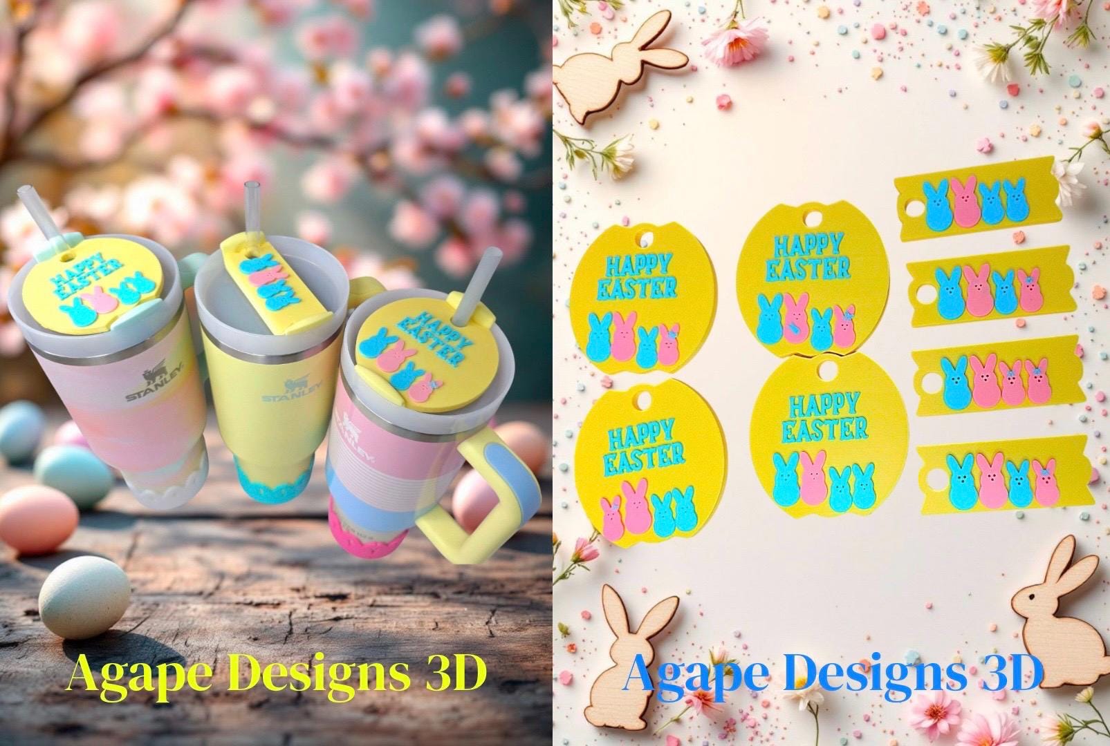 - 3D Printed Easter Peeps Bunny Family Lid Toppers