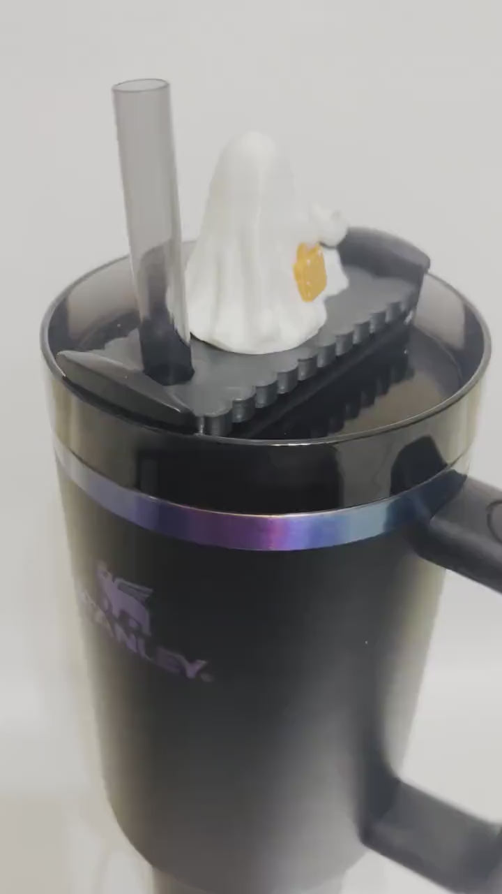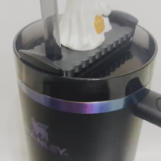 Ghost Walking Cat Halloween Lid Topper for Stanley Tumblers – 3D Printed with Mini Tumbler & Bogg Bag – Fits 20oz 30oz 40oz Stanley Tumbler