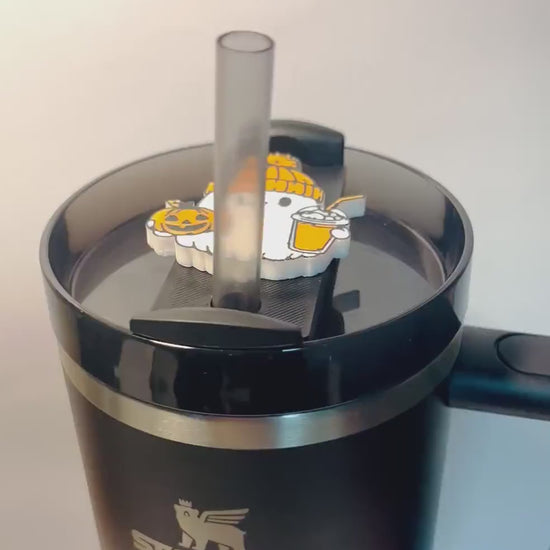 Ghost with Pumpkin and Tumbler Lid Topper for Stanley Tumblers ā Cute Halloween Accessory for 30oz & 40oz Cups ā Festive Tumbler Decor