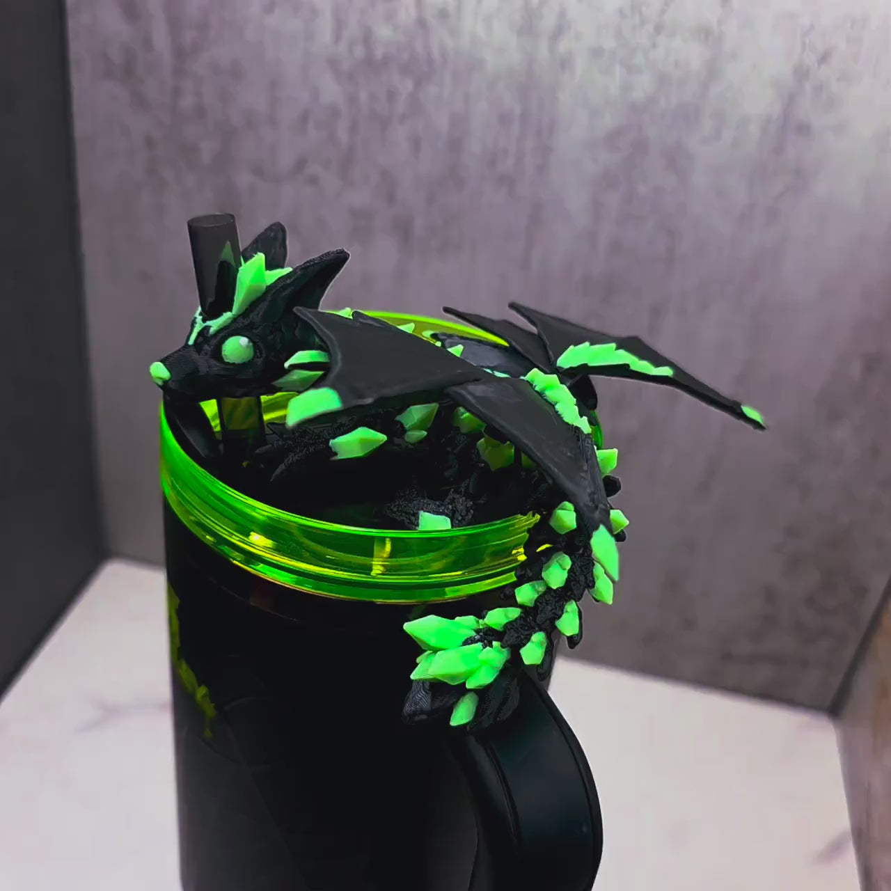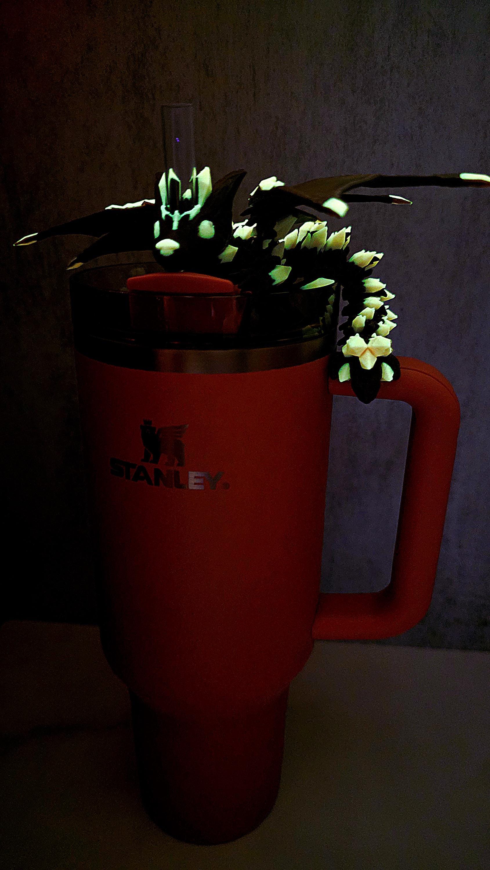 Unleash your wild side with our **Glow-in-the-Dark Wolf Dragon Straw Toppers**, now available with **matching interchangeable dragon scale boots and boot covers!** These toppers combine the strength of wolves with the magic of dragons, featuring fully flexible wings and stunning glow effects. Perfect for collectors, fantasy fans, and Halloween vibes, this set transforms your Stanley into a show-stopping cup.