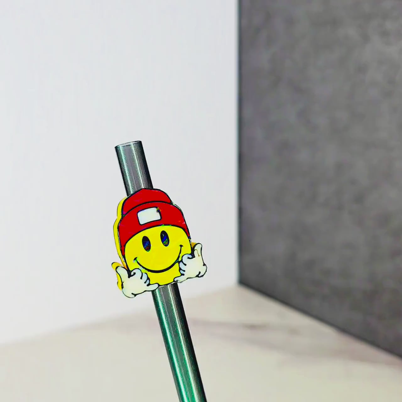 Hang Loose Smiley Face Straw Topper Charm – 3D Tumbler Accessory for 7–10mm Straws | Fun & Vibrant Drink Charm | Custom Color Options