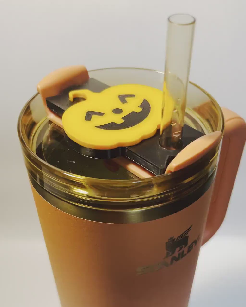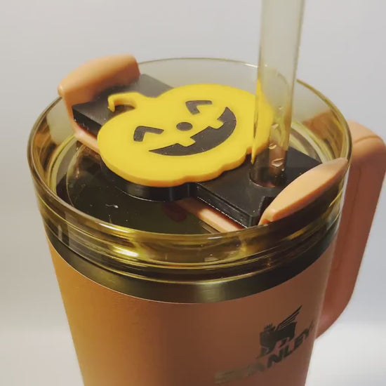 Light up your Stanley cup with a burst of Halloween cheer using our 3D Printed Happy Jack O' Lantern Stanley Lid Topper! Perfect for fans of festive decorations and all things spooky-cute, this topper adds a touch of Halloween magic to your everyday beverage.