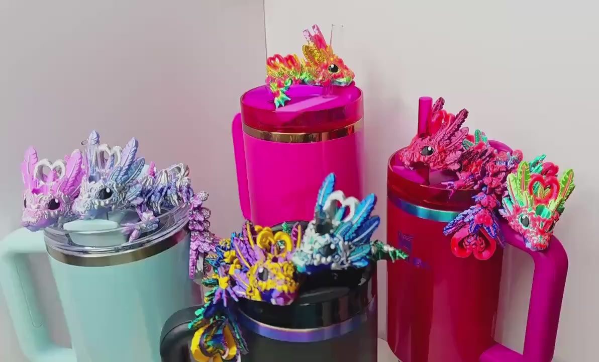 Light Heart Dragon Straw Topper for Stanley Tumbler | Mystical Fantasy Cup Charm | Cute Dragon Tumbler Accessory | Baby & Adult Options