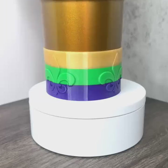 - **Alternating Green, Purple, and Gold**: Embrace the classic Mardi Gras color scheme with alternating **green**, **purple**, and **gold** bands, making your tumbler pop with festive color.