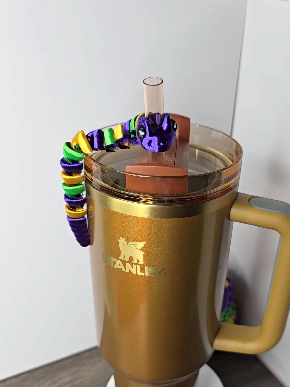 **Why You'll Love It**: Whether you're celebrating Mardi Gras or simply love unique, playful accessories, this **Flexible Snake Straw Topper** will give your Stanley tumbler a magical and lively touch. Its vibrant colors and bendable design make it both fun to use and visually striking, turning your tumbler into a conversation piece.