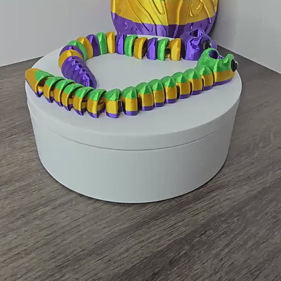 Bring a touch of Mardi Gras magic to your Stanley tumbler with this **3D Printed Flexible Snake Straw Topper**! Designed to embody the festive spirit of the season, this snake topper features vibrant Mardi Gras colors and a flexible, bendable body, adding a fun and dynamic twist to your tumbler. Perfect for anyone looking to add a bit of whimsy and flair to their drinkware!