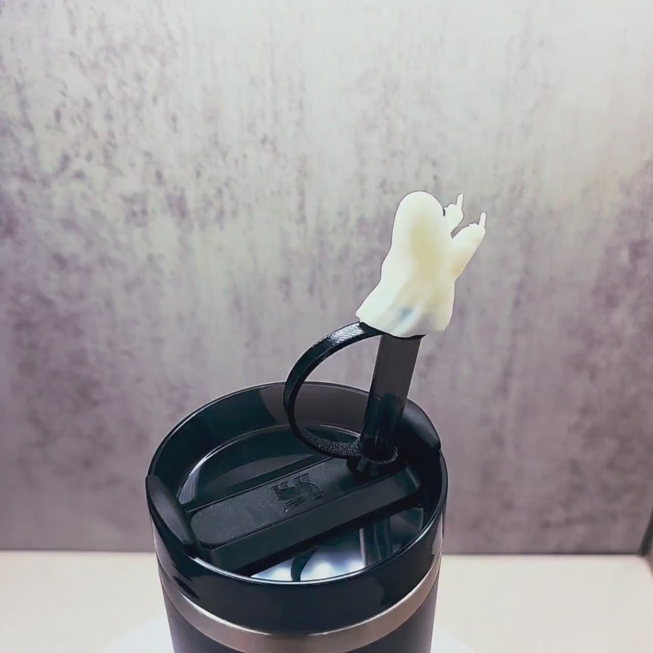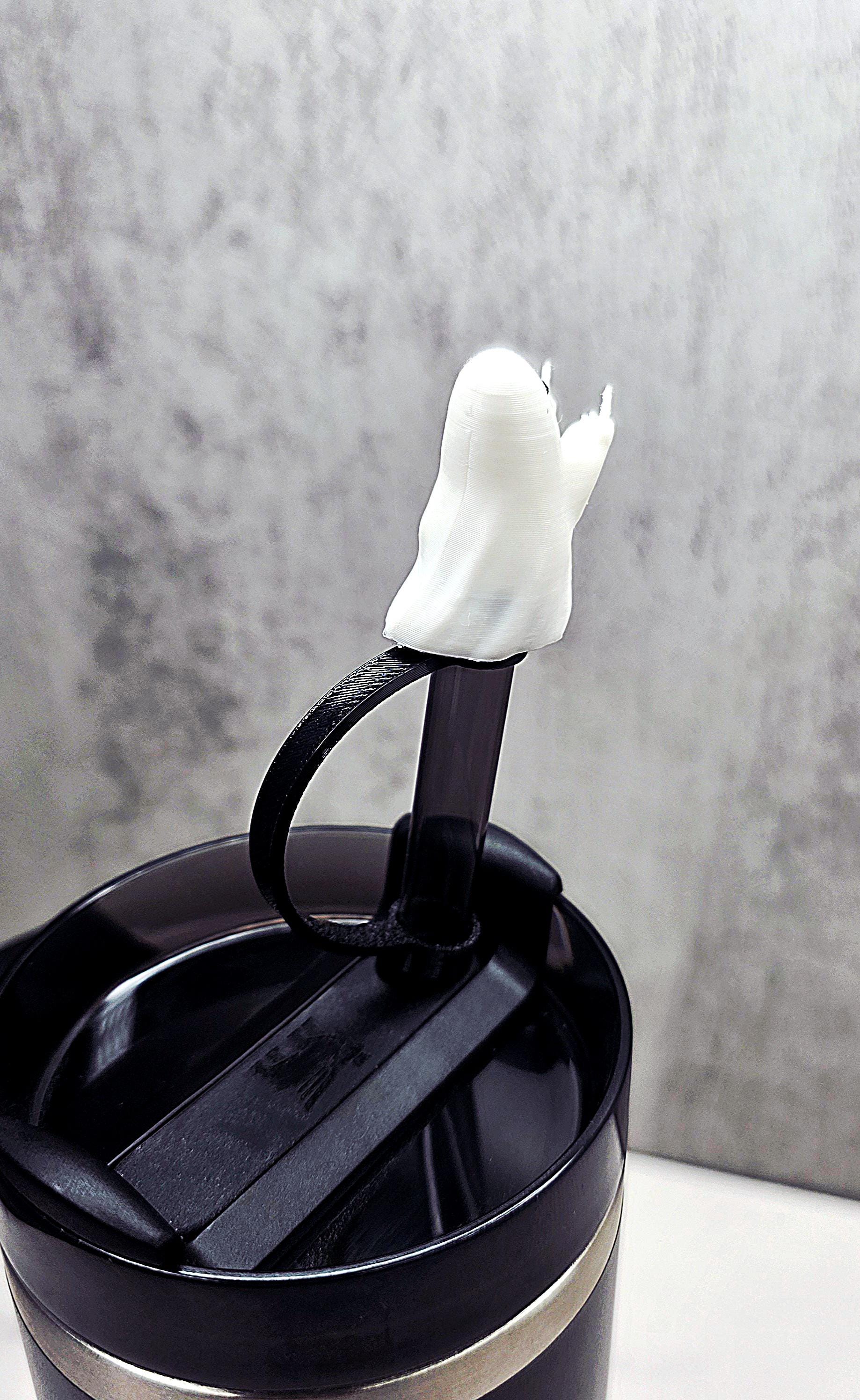 Rude Ghost Flipping Bird Finger Stanley Straw Cover – Halloween Tumbler Accessory Charm to Keep Bugs & Debris Out | Fits 20oz 30oz 40oz Cups