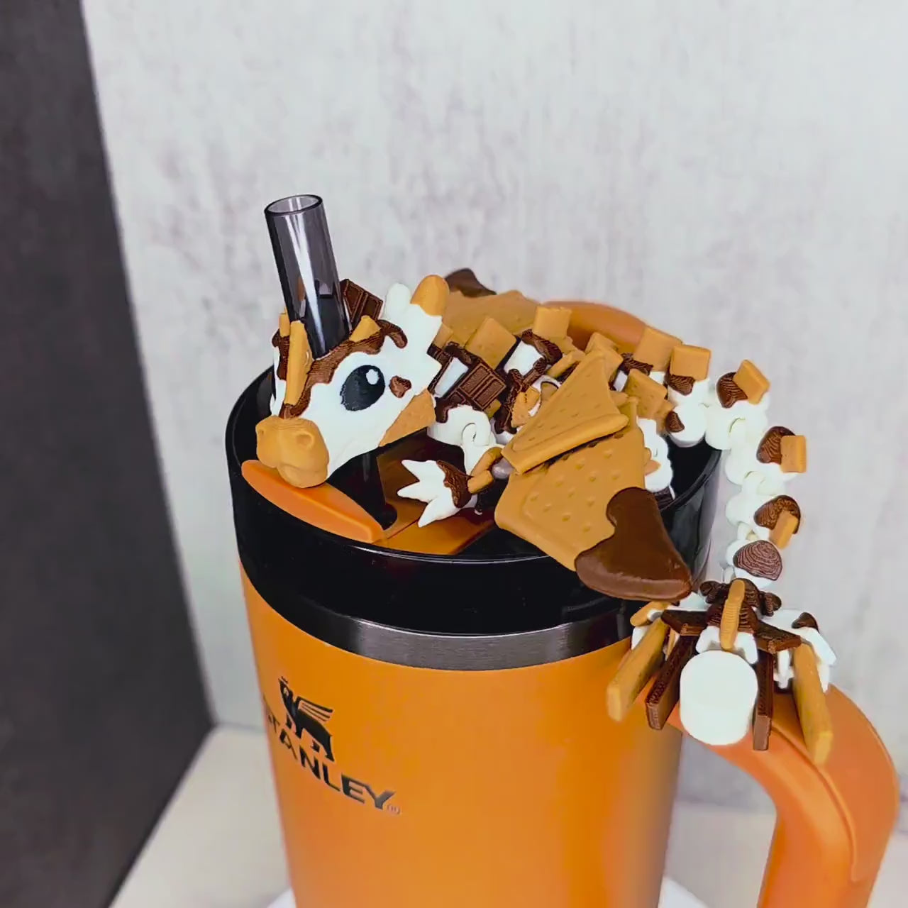 **S'mores Dragon Stanley Tumbler Straw Topper - Flexible 3D Printed Cup Accessory**