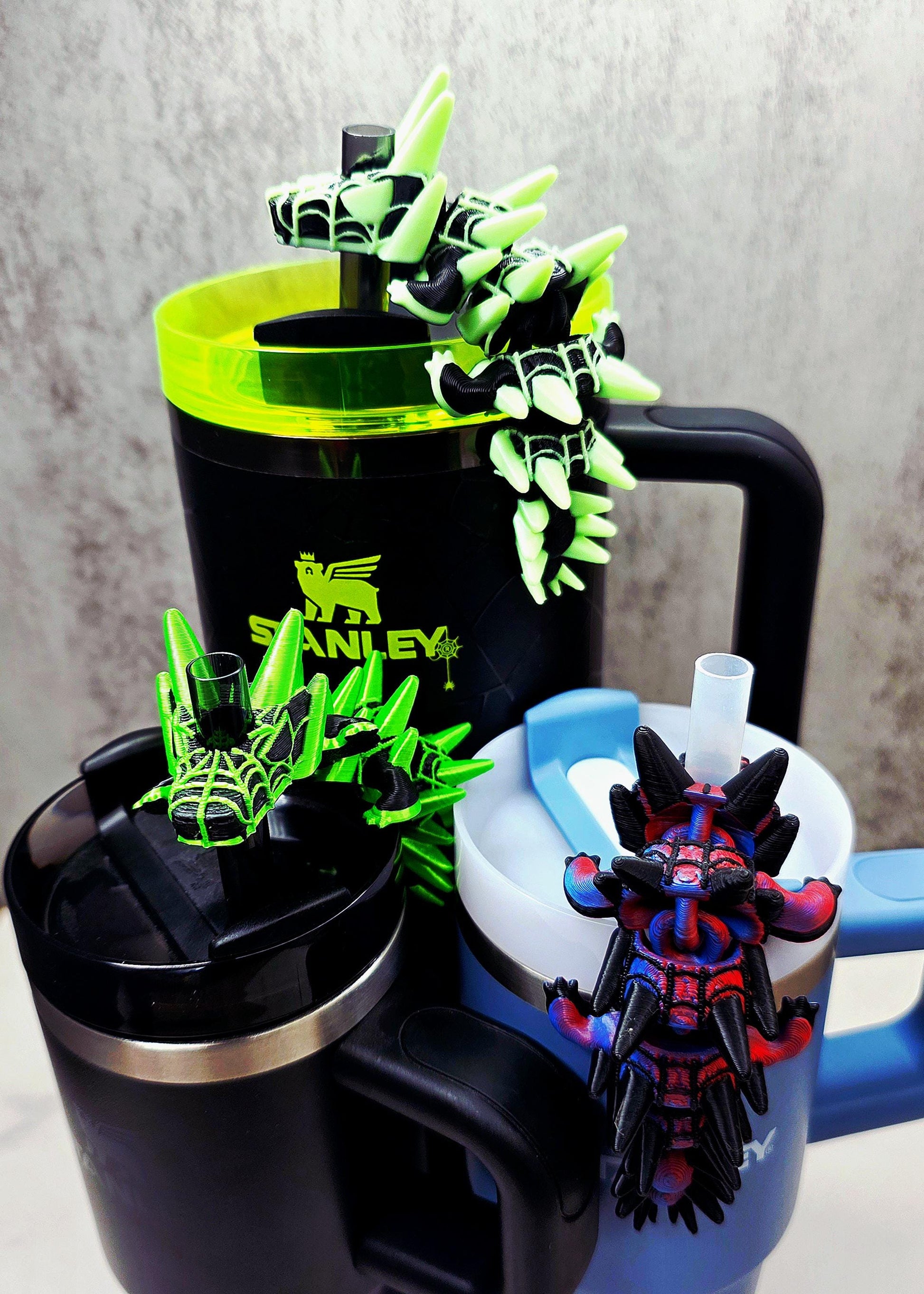 Spider Dragon Stanley Straw Topper – Webbed Spikey Scales Custom Colors & Glow-in-the-Dark Option | 20oz 30oz 40oz Tumbler Accessory Charms