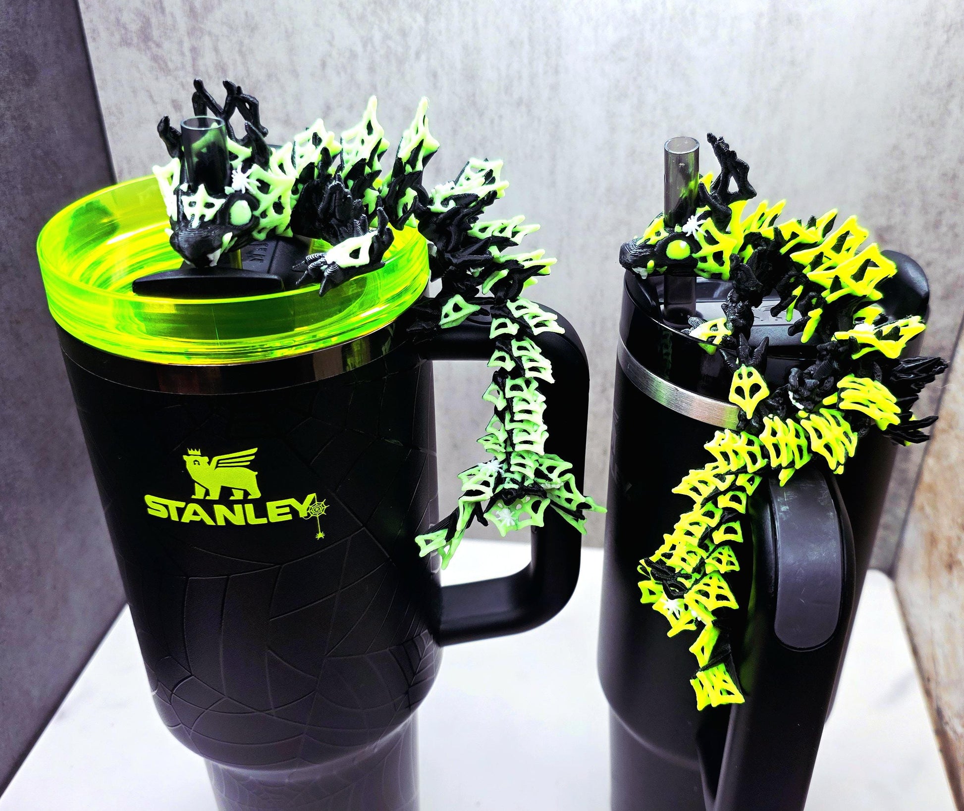 Spider Webbed Dragon Stanley Straw Topper – Custom Colors & Glow-in-the-Dark | Spooky Halloween Tumbler Accessory Charm 20oz 30oz 40oz