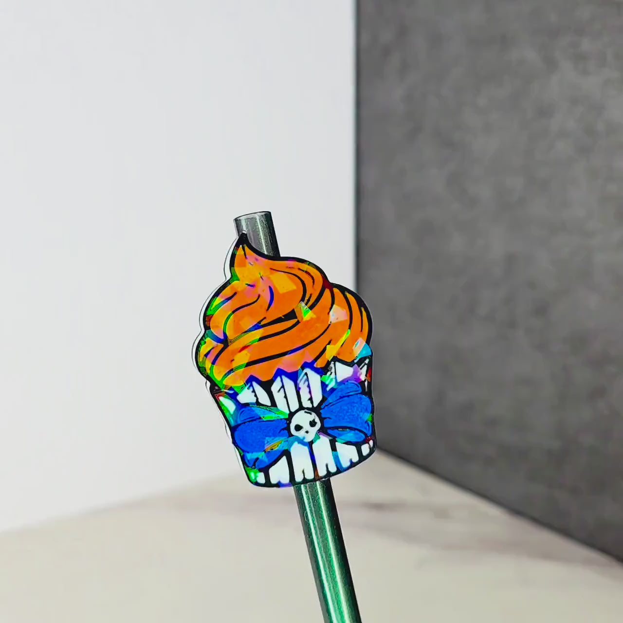 Spooky Cupcake Straw Topper with Skull Bow – Halloween Tumbler Accessory | Fits 7–10mm Straws | Custom Colors Available | Tumbler Charms