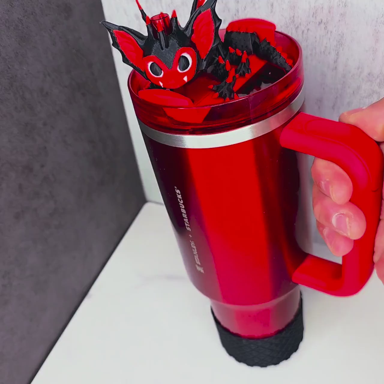 Vampire Bat Dragon Stanley Straw Topper – Spooky 3D Printed Tumbler Accessory Charm for Halloween | Custom Colors To Match Cups